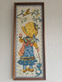 Nostalgie in een lijst: vintage Sarah Kay borduurwerk van een meisje met haar kat aan een riempje. Dit handgemaakte kunstwerk straalt warmte en liefde uit.