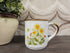 Vintage keramieken beker uit de Wildflower-serie, met een zomers bloemenmotief met oranje bloemen. Het bruine randje langs de bovenkant maakt ‘m helemaal herkenbaar als jaren 70 servies.