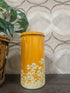 Dit oranje Hooimeijer-blik is gemaakt om op te vallen, oranje van kleur met bloemen.