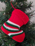Vintage kunststof laarsje van de kerstman met gebreide sok, leuk om te vullen met snoepjes en in de boom te hangen. Kan ook neergezet worden met een plantje