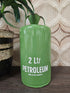 Reseda groene petroleumkan met een inhoud van 2 liter. Uitgevoerd in metaal met een stevige handgreep en schenktuit. De kan is niet meer geschikt voor gebruik, maar leent zich uitstekend als decoratief object.