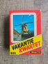 Papita Vakantie Kwartet uit 1965. Een kaartspel met kleurrijke illustraties van steden, met daarop herkenbare bezienswaardigheden zoals torens, poorten, kerken, molens, pleinen en stadhuizen.