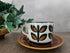 Deze prachtige vintage kop en schotel, is geschilderd in een warme bruine kleur op een lichte achtergrond.