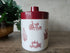 Vintage opaline voorraad pot met een nostalgische uitstraling. Uitgevoerd in wit met een bordeauxrode deksel. Dubbele afsluitbare deksel zorgen voor een luchtdichte afsluiting, ideaal voor het bewaren van koffie, kruiden of andere kleine keukenbenodigdheden.